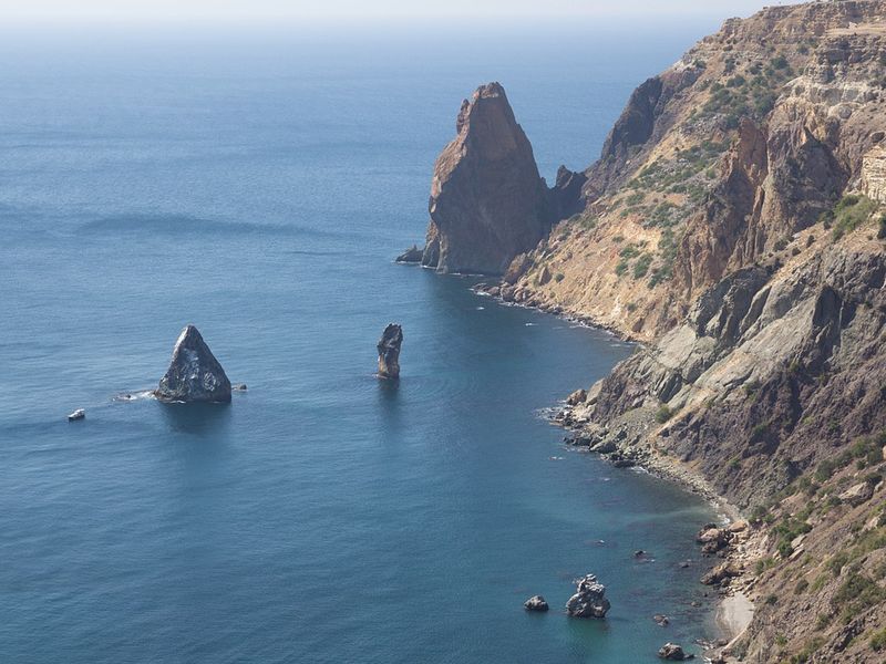 Мыс Фиолент, что раскинулся в Балаклавском районе Севастополя, — это не просто красивое место, а настоящая машина времени. Его суровый рельеф — дело рук доисторического гиганта: около 150 миллионов лет назад мощнейшее извержение вулкана привело к тому, что раскалённые потоки лавы стали застывать в морской воде, формируя те самые слоистые скалы, которые мы видим сегодня. Именно отсюда, с Фиолента, берёт своё начало Главная гряда Крымских гор, протянувшаяся на многие километры до самой Феодосии.
