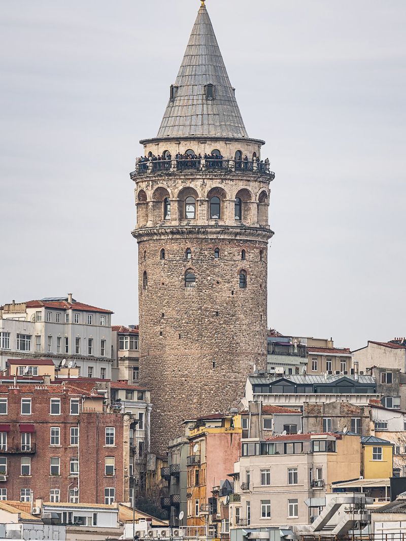 🔸Начните с Галатской башни, построенной генуэзцами в XIV веке. Поднимитесь на смотровую (лифт или лестница), чтобы увидеть панораму Босфора и золотую осень. У подножия — кафе с симитом (20 лир) и видом на башню.