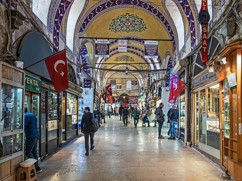 🔸После — Гранд-базар, один из крупнейших рынков мира с 4000 лавок. Здесь торгуйтесь за ковры (от 500 лир), специи (50 лир/кг) или лампы (200 лир). Осенью базар украшен к фестивалям, а продавцы угощают чаем. Гранд-базар работает с XV века.