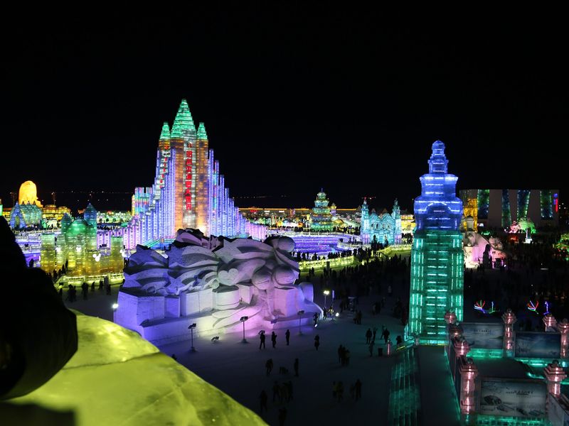 🔸Январь становится пиком холода: днём -20– -10 °C, ночью до -30 °C, с снегопадами 15–20 дней. Именно в этом месяце расцветает Харбинский фестиваль льда и снега — с 5 января по конец февраля 2026 года, где вы увидите огромные скульптуры, подсвеченные разноцветными огнями.