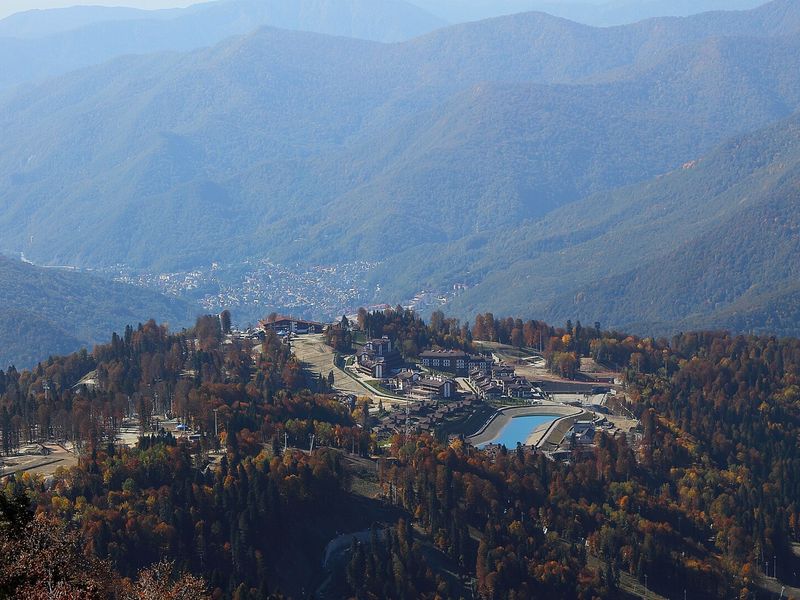 Чёрное море Сочи всего в 42 км, где можно утром спускаться по склонам на лыжах, а вечером расслабляться на пляже с коктейлем в руке.
