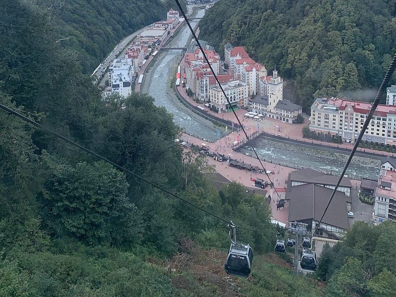 🔸Представьте: вы садитесь в комфортабельную гондолу канатки «Олимпия» (первый этап подъема), и под вами медленно проплывают густые хвойные леса, извилистая река Мзымта с бирюзовой водой и альпийские луга, усыпанные яркими эдельвейсами и рододендронами в летний сезон.