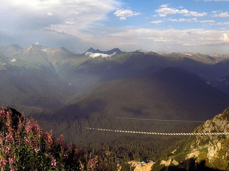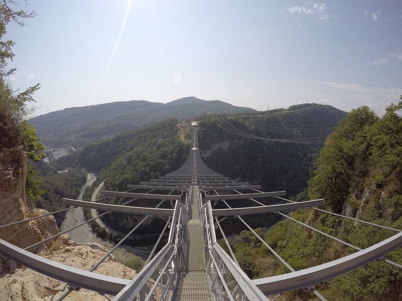 Скайпарк — место для смельчаков и любителей острых ощущений: подвесной мост SkyBridge длиной 439 метров (самый длинный в России) висит на высоте 207 метров над Ахцу ущельем, где под ногами — бурная река Мзымта, отвесные скалы и густой лес.