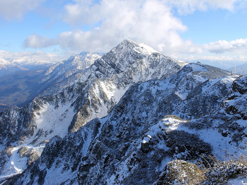 На высоте 2320 метров ждет Роза Пик — высшая точка курорта, с панорамой 360 градусов: величественные Кавказские хребты, искрящееся Чёрное море на горизонте и даже очертания Абхазии в ясный день, когда небо чистое.