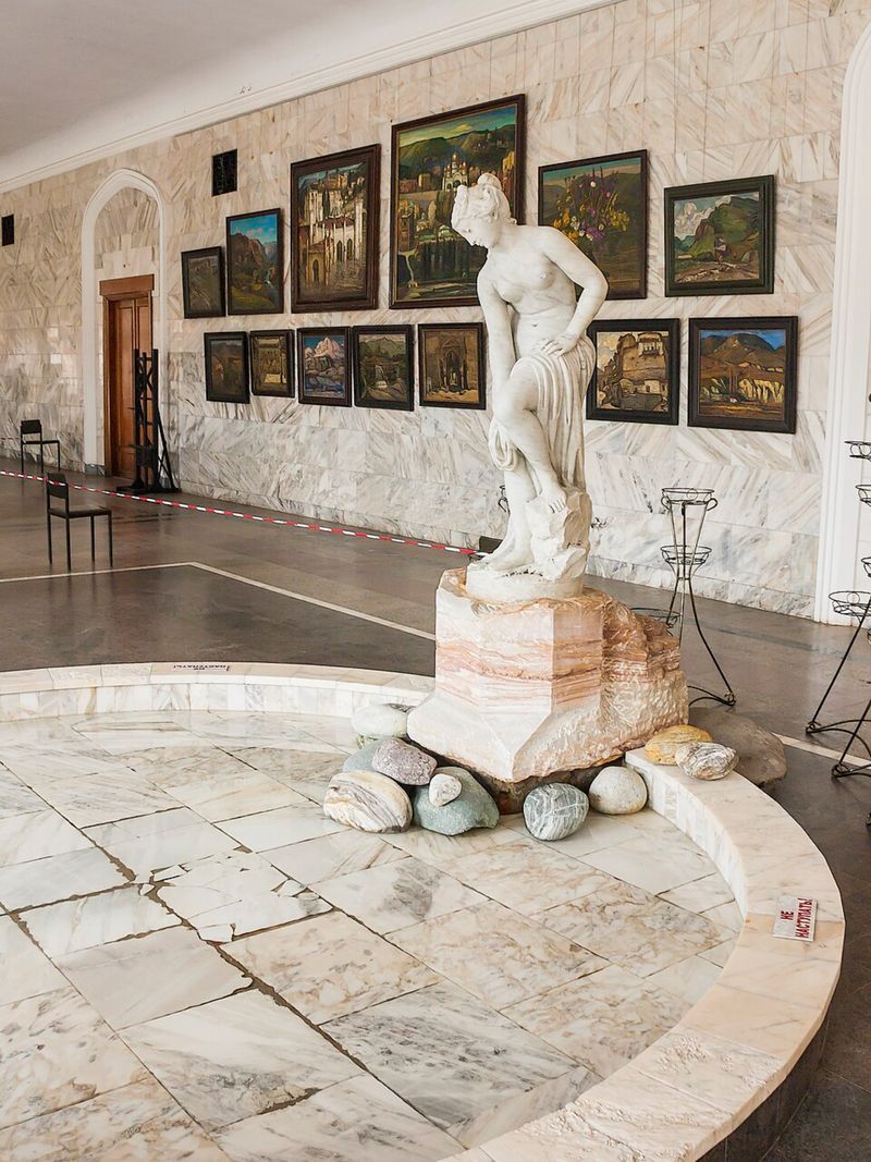 Под огромным стеклянным куполом, где эхо шагов сливается с плеском источников, выставки кавказских ремесел — ручной ковёр с орнаментами, керамика с горными мотивами, ювелирка из серебра — манят потрогать и вдохновиться.