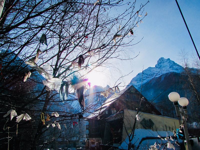 В новогодние праздники, особенно 3 января, сюда устремляются любители активного отдыха: канатные дороги (их здесь три уровня, общая длина подъемников — более 5 км) поднимают к захватывающим видам на вершину Домбай-Ульген (4046 м), самую высокую точку Западного Кавказа.