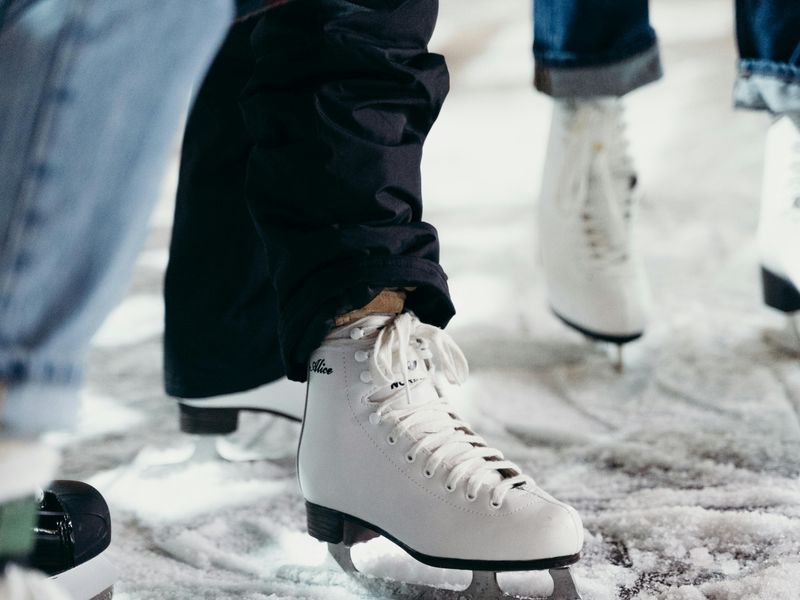 💫 Атмосфера ледовая и веселая: вокруг гирлянды на деревьях, пар от теплых источников, смех детей — сессия катания длится 1 час, но можно продлить. Площадь катка — около 700 кв. м натурального льда под открытым небом, с ровной поверхностью для фигурного катания или просто скольжения.