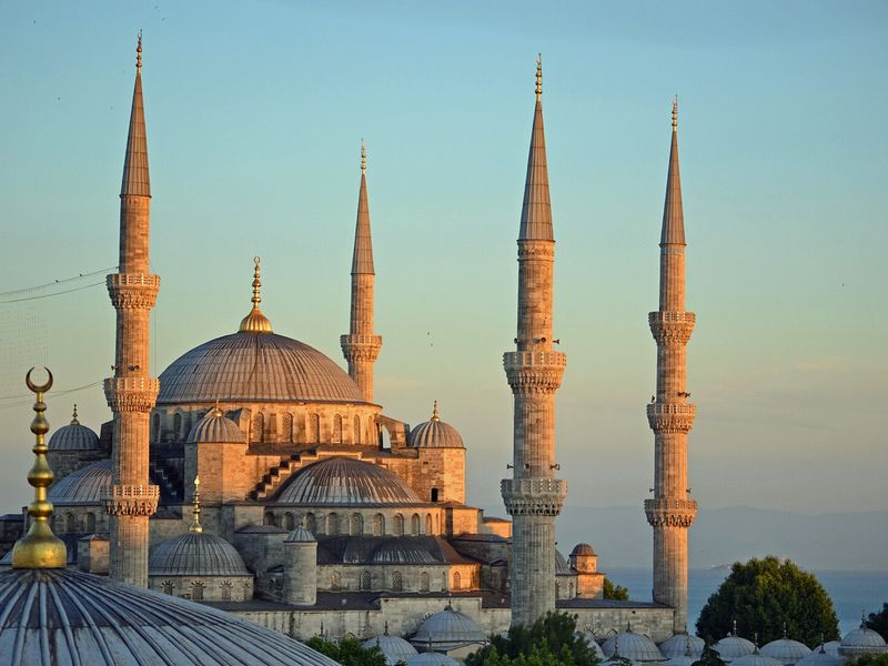 Голубая мечеть, или Султанахмет Джами, — шедевр 1616 года, построенный султаном Ахмедом I, с шестью минаретами (редкость, вызвавшая скандал в Мекке) и 20 000 синих изразцов из Изника внутри, создающих небесный эффект.
