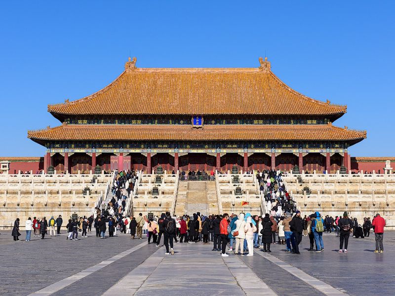 🔸Интересный факт: Гугун — крупнейший дворцовый комплекс мира, объект ЮНЕСКО,占地 720 000 м², с золотыми драконами на крышах для защиты от пожаров.