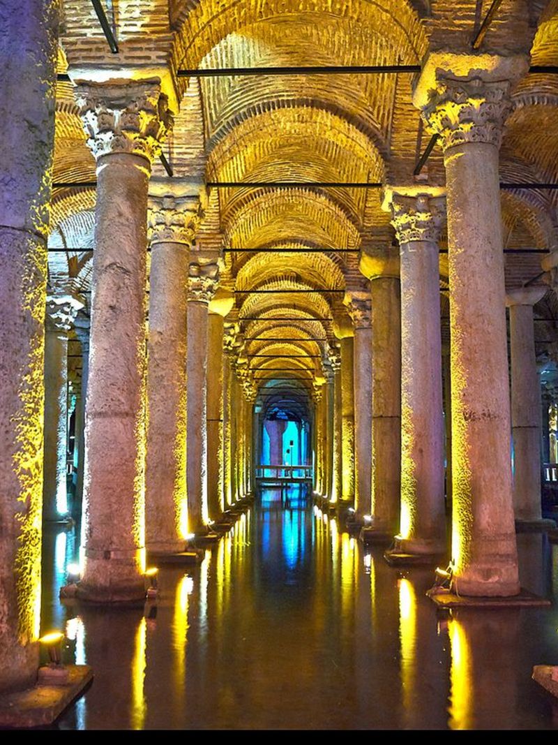Гигантское водохранилище, возведённое ещё при византийском императоре Юстиниане I в VI веке, столетиями поило великий город. Османы предпочли оставить его в забвении, и лишь к концу ХХ века цистерну очистили и превратили в один из самых атмосферных музеев Стамбула.