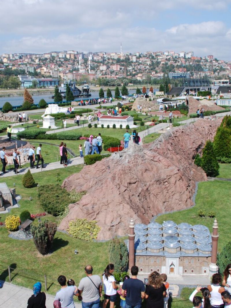 На территории в 60 000 квадратных метров разместились 135 миниатюрных шедевров в масштабе 1:25. Здесь уживаются античные храмы, византийские церкви и османские дворцы. Рядом с уменьшенной Айя-Софией стоит крошечная Голубая мечеть, а за ними виднеется дворец Долмабахче. Особый шарм придают объекты за пределами Турции — например, дом Ататюрка в греческих Салониках.