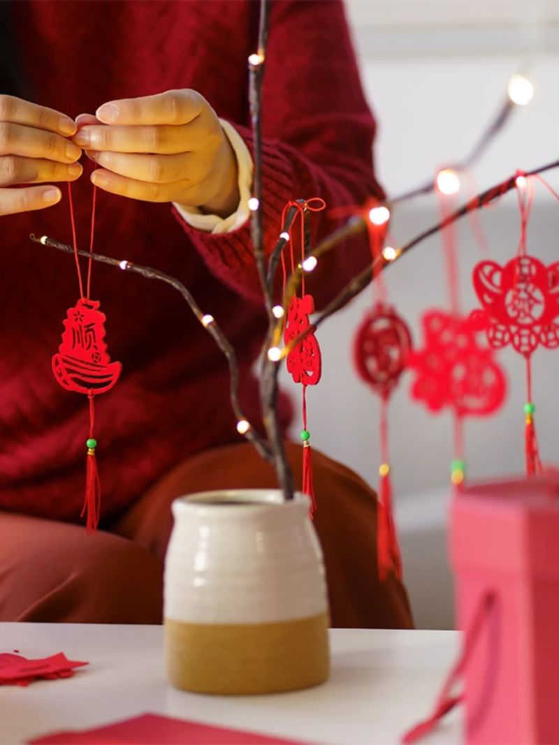 Перед началом фестиваля весь городской ландшафт преображается: повсюду развешивают алые бумажные фонари, плакаты с изображением животного-символа. На входные двери непременно крепят красные квадраты с иероглифом «счастье», а также парные надписи с поэтическими изречениями. Интерьеры домов, торговые галереи и витрины бутиков украшают затейливыми узорами, созданными в технике традиционного вырезания из бумаги «цзяньчжи». Чаще всего на них изображают тот же иероглиф удачи или стилизованные фигуры зодиакального покровителя.