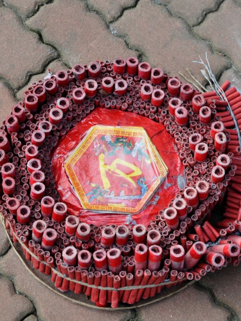 Именно поэтому в старину было принято поджигать во время праздника бамбуковые палочки, которые, сгорая, издавали громкий треск. Сегодня эту традицию продолжают петарды и фейерверки, грандиозные представления с которыми проходят на городских площадях в течение всех двух недель гуляний. Кстати, фейерверки были изобретены именно в Китае в период X–XII веков. Первые образцы представляли собой бамбуковые стебли, начинённые дымным порохом.