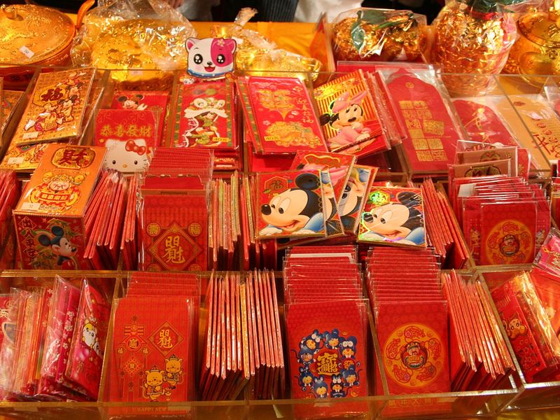 Ещё один неотъемлемый атрибут праздника — дарение хунбао, специальных конвертов алого цвета, в которые вкладывают денежные купюры. Согласно поверью, количество банкнот внутри обязательно должно быть чётным, именно такой подарок сулит получателю наивысшую удачу.