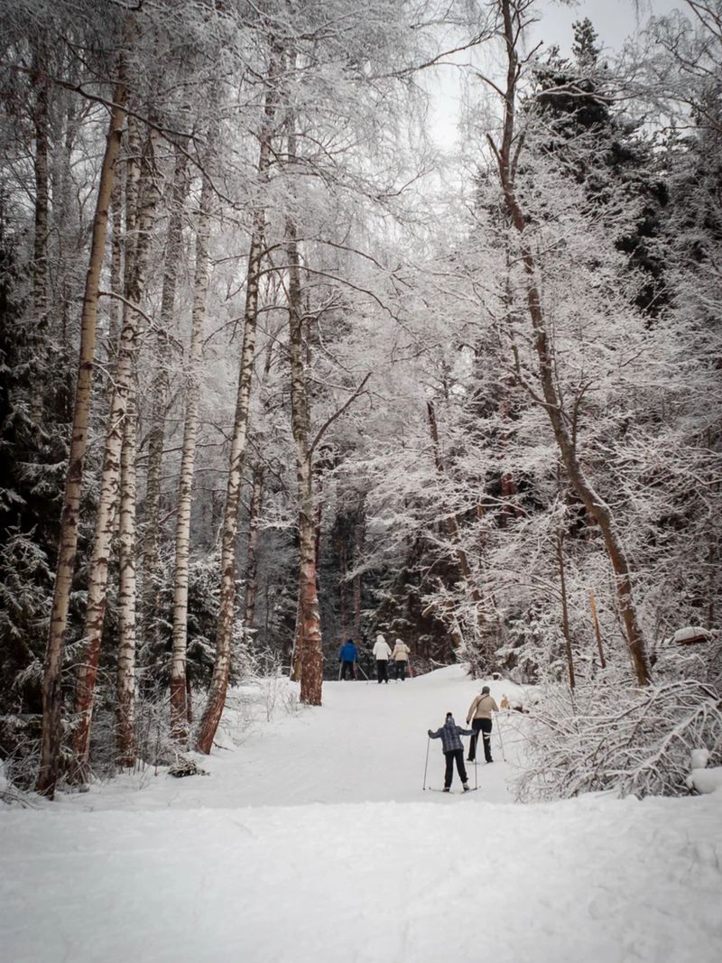 Парк располагает двумя маршрутами для лыжных прогулок протяжённостью три и пять километров. Вы можете воспользоваться своим снаряжением абсолютно бесплатно или арендовать его на месте — стоимость стартует от двухсот рублей за тридцать минут.