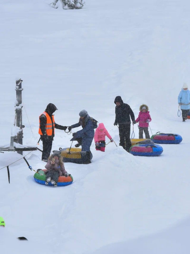 Спуск на тюбингах. «Ватрушки» доступны для аренды, а для подъёма работает отдельный «беби-лифт». Стоит учитывать, что тюбинговая трасса функционирует не в постоянном режиме.