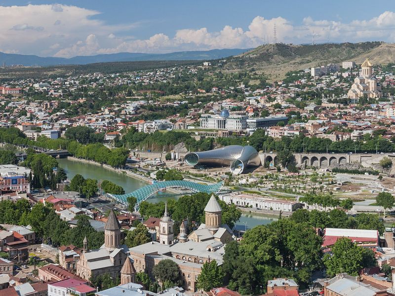 Погода в Тбилиси летом (+25–35°C) хороша для 5–6-часовой прогулки с заходом в соборы и кафе. Это место революций 2003 года и театрального вайба.