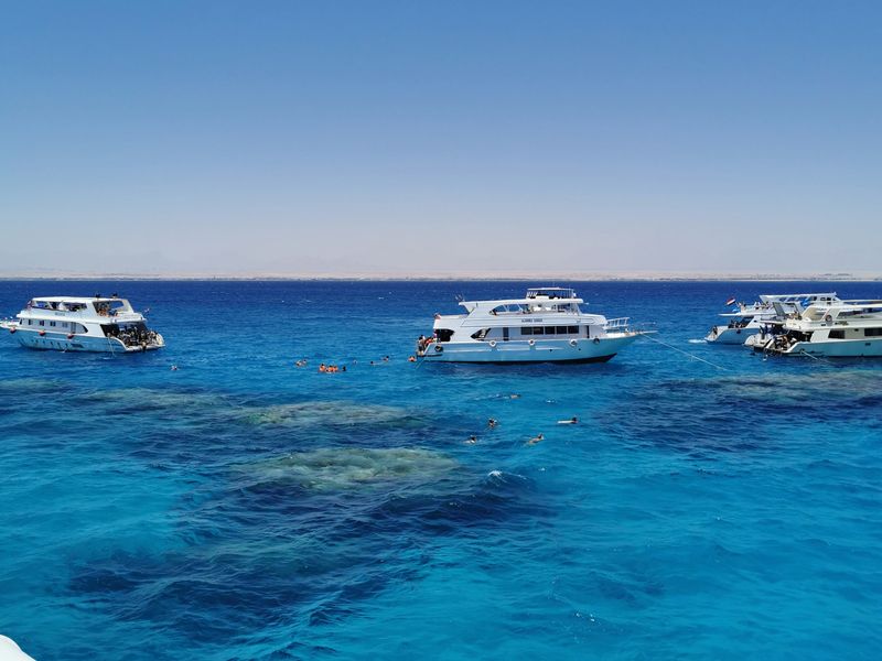 Ветер 4–7 м/с (северный, стабильный), охлаждает днём, но в защищённых бухтах (Макади, Сахл-Хашиш, Эль-Гуна) — зеркальная гладь.
