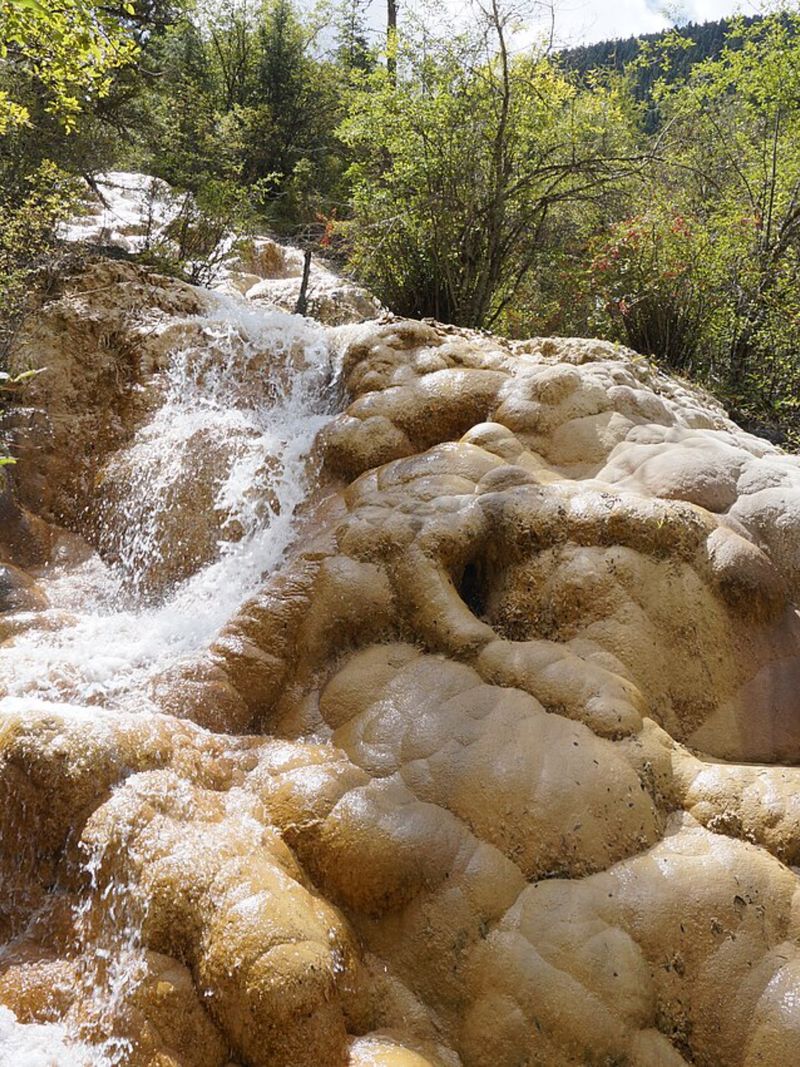 Секрет этого буйства красок не в волшебстве, а в науке: виноваты особые бактерии и водоросли, которые творят чудеса, окрашивая воду в невероятные оттенки. А сверкающие золотом края этих природных бассейнов — на самом деле известняк, отполированный водой до блеска. Всё это богатство формировалось веками из кальцита, который неспешно кристаллизовался из ледниковых вод. Если забраться на одну из окрестных вершин, открывается вид, полностью оправдывающий название долины — «Жёлтый дракон». Ведь вся система и правда напоминает чешуйчатую спину мифического существа, извивающуюся среди зелени.