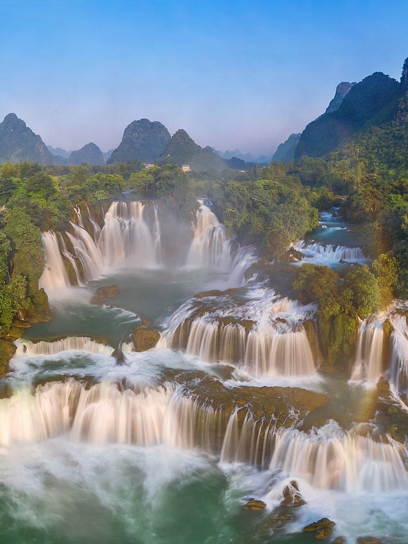 На границе Китая и Вьетнама низвергается один из самых впечатляющих водных каскадов Азии — Дэтянь, что поэтично переводится как «водопад благородных небес». Это не просто поток воды, а настоящая природная мощь, занимающая четвёртое место в мире среди крупнейших пограничных водопадов и первое — в Юго-Восточной Азии.