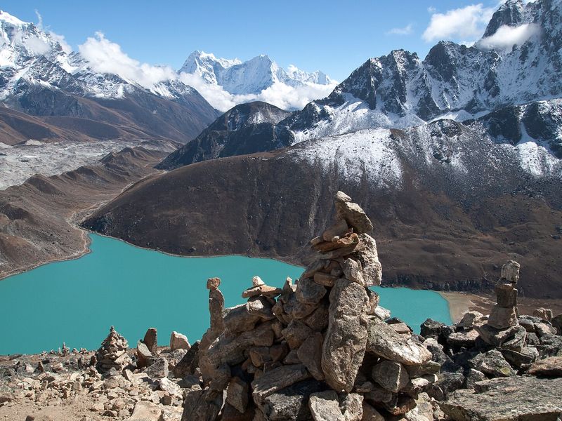 Путешествие в Гималаи в Непале — это треки к базовому лагерю Эвереста (5364 м), бирюзовые озёра Гокио и панорамы Аннапурны.