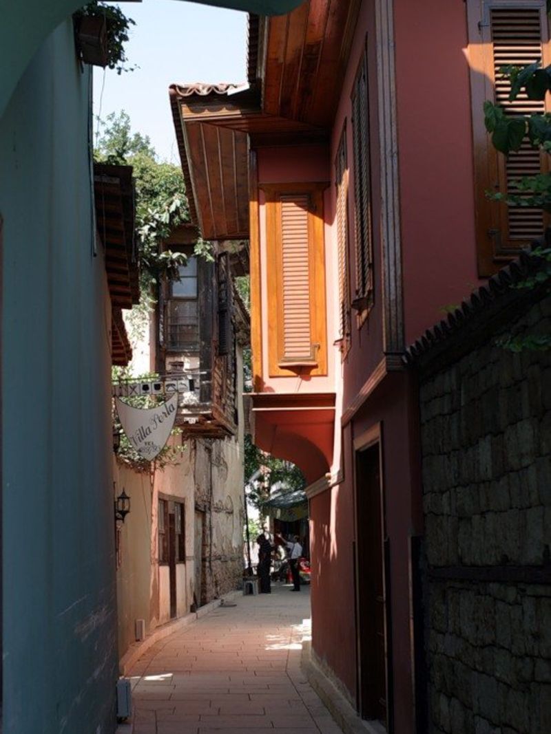 Это самая старая часть города — территория, находившаяся внутри древних крепостных стен. В районе бухты Калеичи вы увидите традиционные турецкие дома, отели с уютными внутренними двориками и видовыми террасами. Пляжей здесь немного, оба платные — Адлар и Мермерли.
