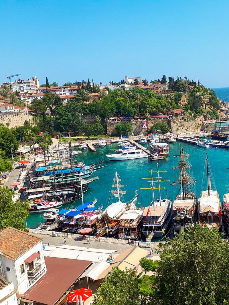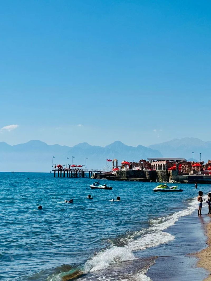 Напротив пляжа находится главный порт Антальи, где доступна аренда катера или яхты для морских прогулок.