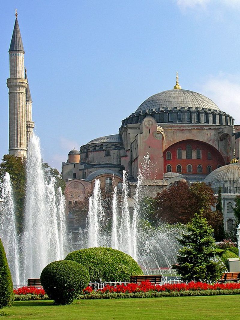 Центральным элементом ансамбля выступает архитектурная жемчужина Стамбула — мечеть Айя-София, сохранившая древние христианские мозаики. Изначально этот храм был возведён по велению византийского императора Юстиниана I в VI столетии, а в XV веке преобразован в мечеть.