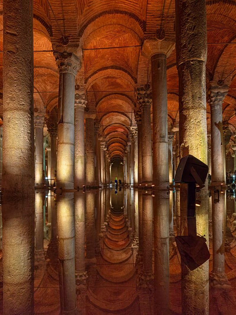 Цистерна Базилика — древнее подземное водохранилище, чья история насчитывает уже полторы тысячи лет. Сегодня её пространство открыто для посетителей как музей, однако главная ценность места заключается не в классических экспонатах, а в его абсолютно особенном настроении. Архитектура зала с рядами колонн напоминает величественный дворец, но его расположение под землёй создаёт ощущение таинственности и погружения в другую эпоху.