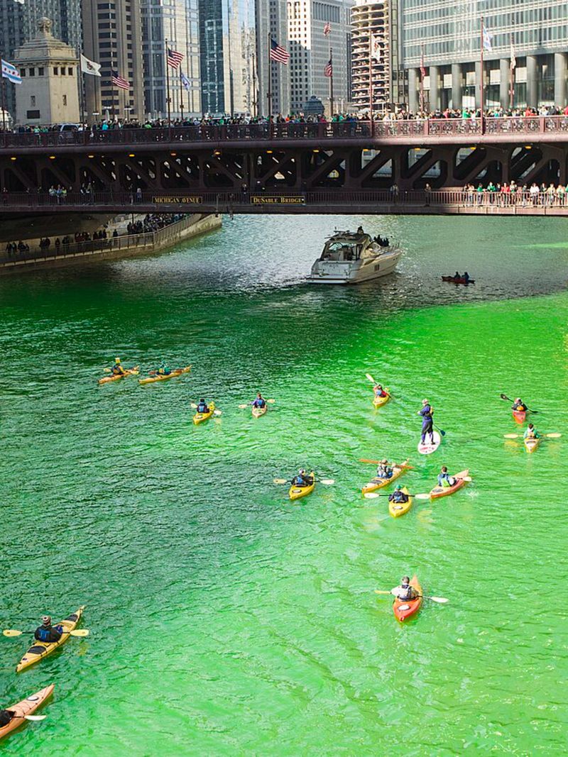 Любопытно, что самый ирландский праздник давно покорил весь мир, особенно США, куда массово эмигрировали жители острова. Чикаго в этот день и вовсе впадает в зелёное безумие: вот уже несколько десятилетий там принято окрашивать в ярко-зелёный цвет… воду городской реки! Видимо, чтобы ни у кого не осталось сомнений — дух святого Патрика добрался и сюда.