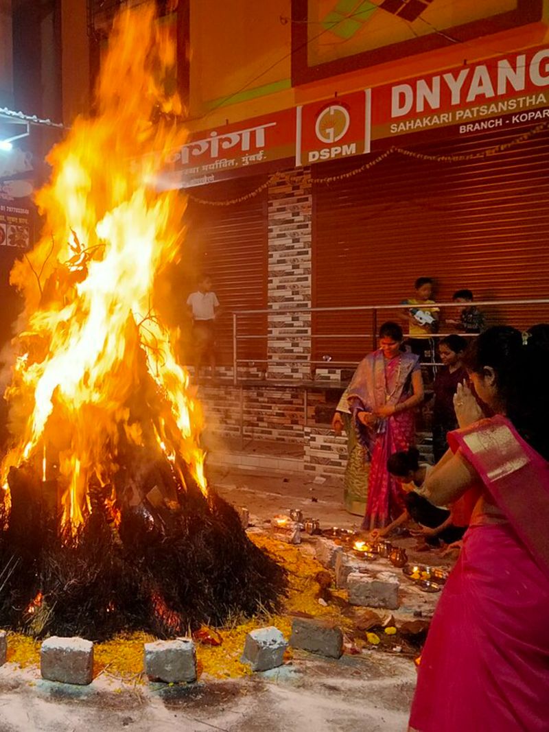 Всё начинается вполне эпично — с ритуального сожжения огромного чучела демоницы Холики. Под оглушительные песни и танцы пламя поглощает символ зла, уничтожая всё плохое и прогоняя прочь зимних духов. Процессия чем-то напоминает нашу Масленицу, только с индийским колоритом: в огонь бросают подношения местным божествам в виде цветов и фруктов.
