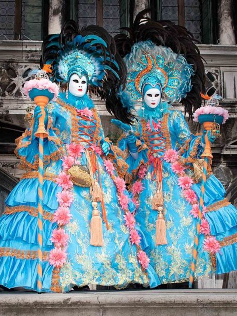 Торжественное открытие — это всегда завораживающий «Полет Ангела», когда смелая артистка эффектно спускается с почти стометровой колокольни Сан-Марко прямиком на одноимённую площадь. Главные действующие лица всего происходящего, конечно же, — маски и костюмы. Их изготавливают месяцами, щедро используя самые дорогие материалы: шёлк, бархат, сусальное золото.