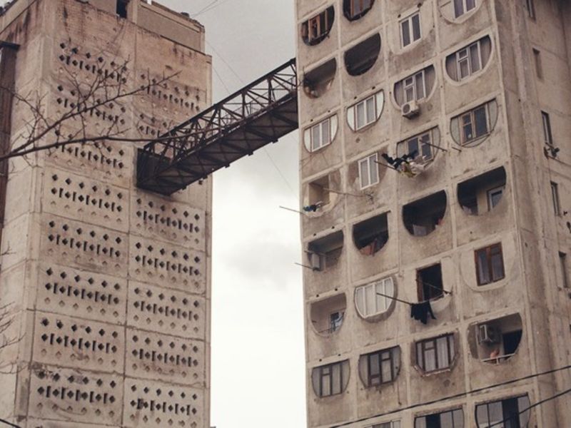 На окраине Тбилиси, можно найти настоящий памятник советскому архитектурному модернизму — жилой комплекс на плато Нуцубидзе, где пешеходные мосты буквально пронзают многоэтажки насквозь. Так зодчие прошлого века боролись с горным рельефом, избавляя жителей от изнурительных подъёмов.