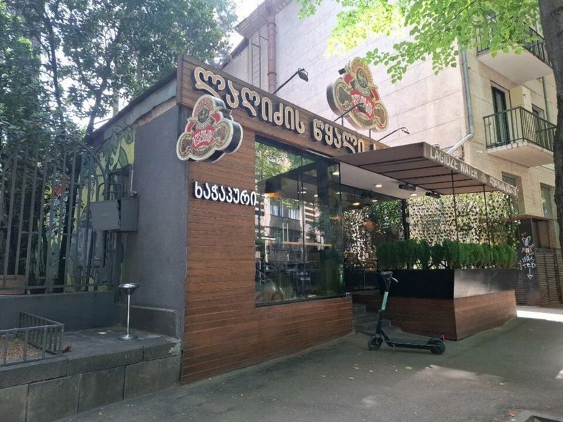 Это заведение невозможно описать в двух словах. Изначально это был ботанический эксперимент садовода Зураба Шеварднадзе, который превратил обычный двор в цветущий оазис. Сегодня среди этой буйной зелени работают кафе и небольшой отель. Клумбы из старой обуви, инсталляции из глиняных горшков — всё это плод фантазии хозяина. Здесь подают чай и лимонад, приготовленные из растений, что растут буквально в двух шагах от вашего стола.