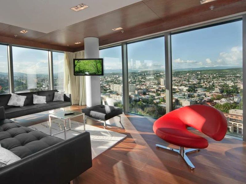Чтобы оценить Тбилиси с высоты, стоит подняться на восемнадцатый этаж отеля «Radisson Blu Iveria». Подъём бесплатный, но ради поддержания светских условностей разумно заказать бокал вина. Вид на ночной город, раскинувшийся внизу, того определённо стоит. Это тот случай, когда алкоголь оправдан возвышенными целями.