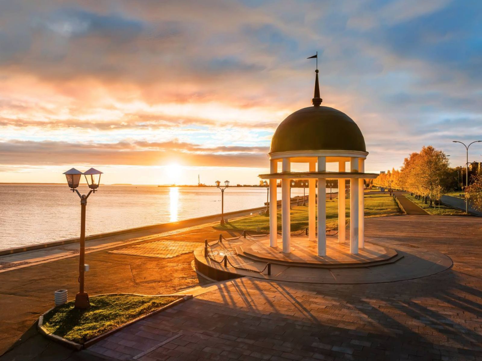 Знакомство с городом начнем на живописной набережной, усыпанной необыкновенными валунами и декорированной презентами городов — побратимов Петрозаводска. Вы оцените эту нетривиальную галерею авангардной скульптуры под открытым небом!