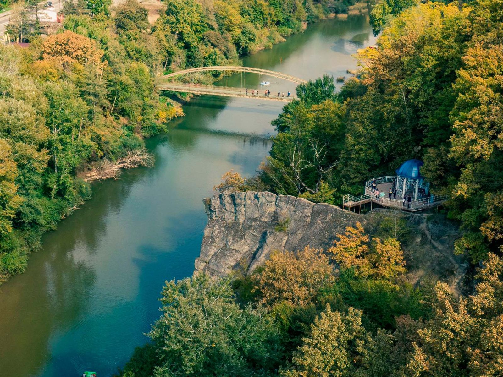 С моста открывается великолепный вид на реку и горы, отличное место для фотографий.