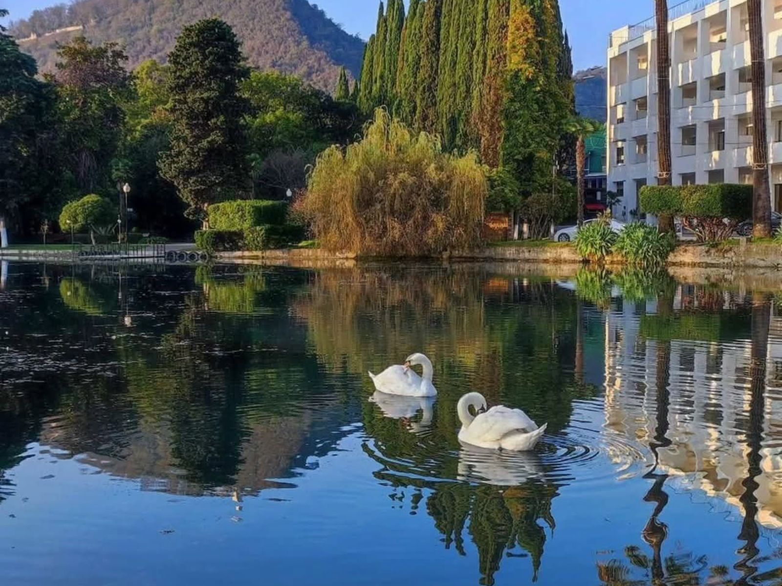 Когда солнце в зените, лучше всего спрятаться в прибрежной зоне. Приморский парк: прогуляйтесь вдоль системы прудов, созданных более 100 лет назад. В зеркальной воде отражаются пальмы, а по глади грациозно скользят черные и белые лебеди. Станция Псырцха: обязательная точка для эстетов. Эта железнодорожная платформа над рекой Псырцха выглядит как декорация к фильму в стиле фэнтези: резной павильон, зажатый между двумя туннелями в скалах.