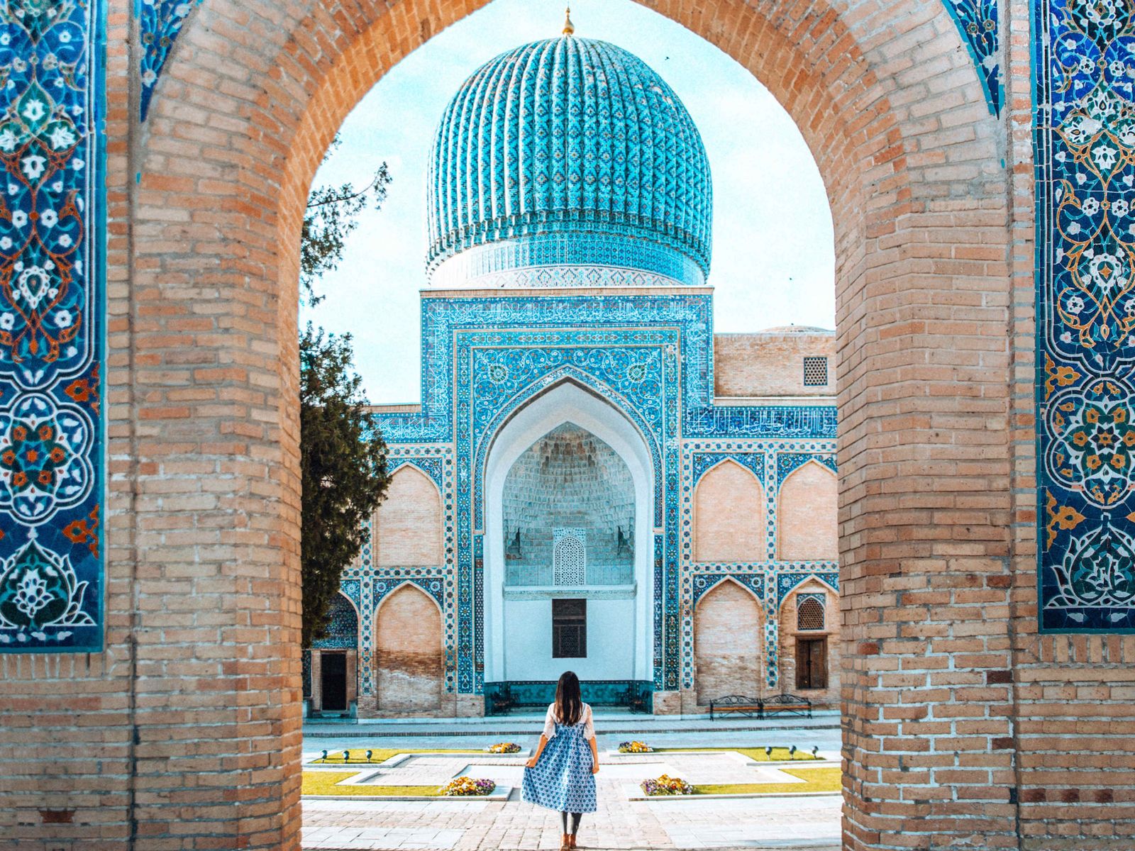 14:15 — 17:00 — Фабрика ковров, «синий город» Шахи-Зинда, мечеть Биби-Ханум и прогулка по базару Сиаб.