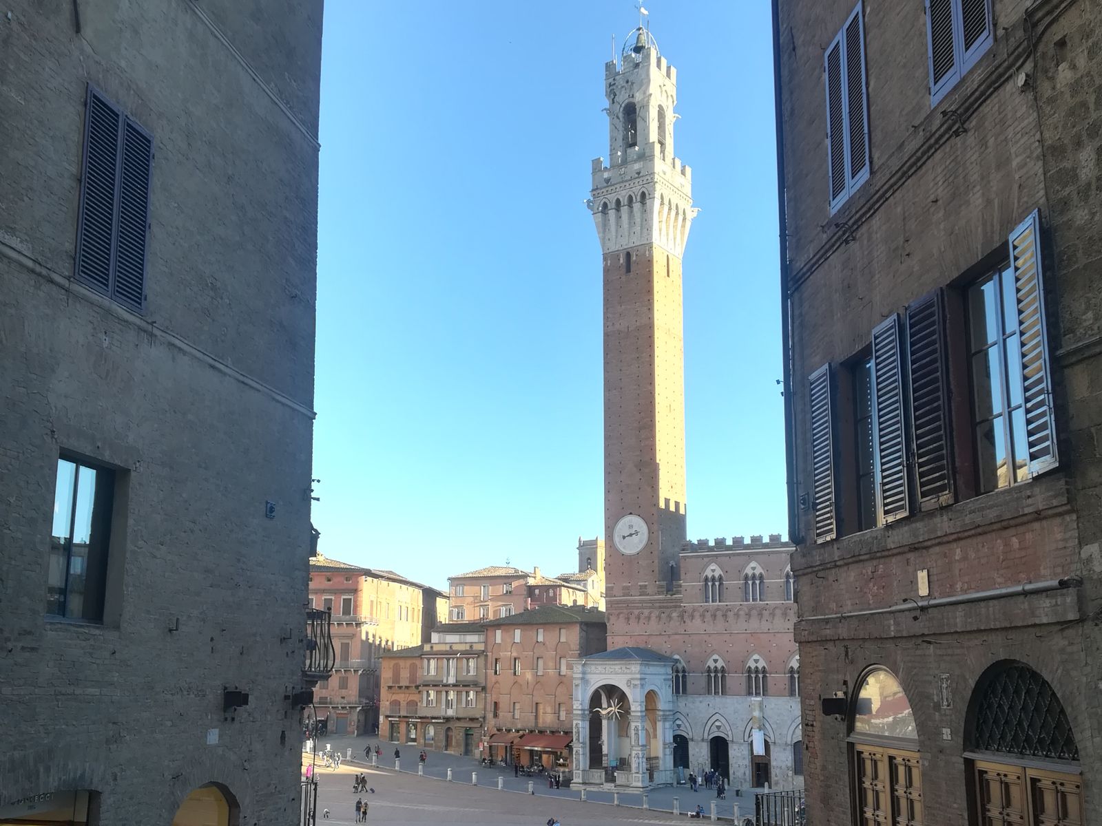 В палаццо Пубблико сейчас находится мэрия города, а в Средние века тоже располагались местные власти. Все залы дворца офрескованы, самый знаменитый — это зал Мира, где можно полюбоваться огромными, на всю стену фресками "Буон Говерно" ("Хорошее правительство") и "Каттиво Говерно" ("Плохое правительство"). Автор — художник XIV века Амброджо Лоренцетти. Многие фрески дворца считаются шедеврами сиенского изобразительного искусства разных эпох, с XIII до XIX века, выполненными в разных стилях. Прекрасный вид на сиенские окрестности открывается с Лоджии, места отдыха представителей средневекового правительства "Девяти", которым не разрешалось выходить из здания без важной причины. Таким образом власти пытались предотвратить утечку информации, подкуп и коррупцию. И это в далёком XIII веке!
