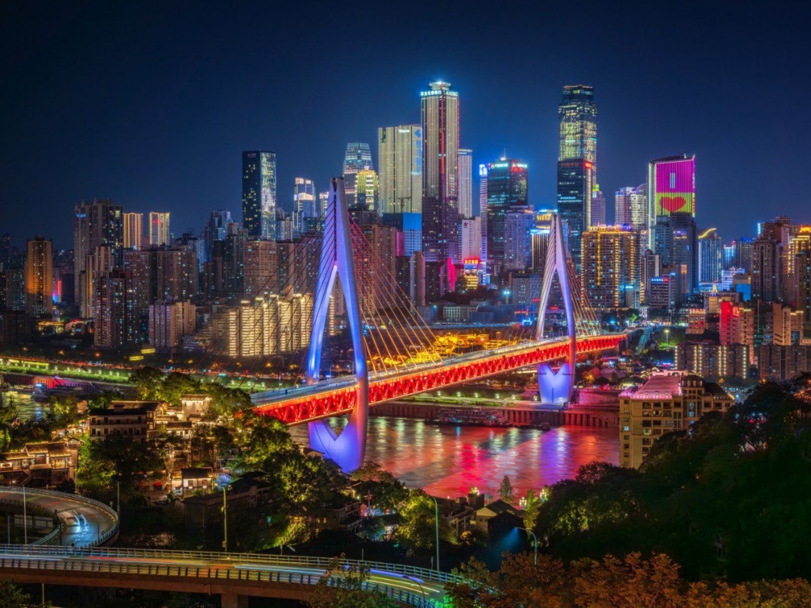 - обзорную площадку, откуда открывается самая выигрышная панорама на горизонт Чунцина, а мосты, подсвеченные здания и бесконечные ряды огней создают гипнотическое зрелище;