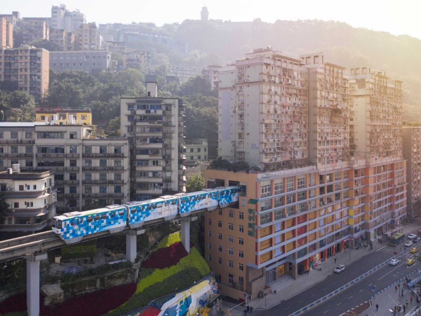 - одну из многочисленных смотровых площадок, откуда открываются потрясающие панорамные виды на мегаполис. Вас впечатлит инновационная архитектура Чунцина с небоскребами, вырастающими из горных склонов и каскадом спускающимися вниз. Благодаря изобретательности градостроителей эта застройка вполне гармонично интегрирована в природный ландшафт.