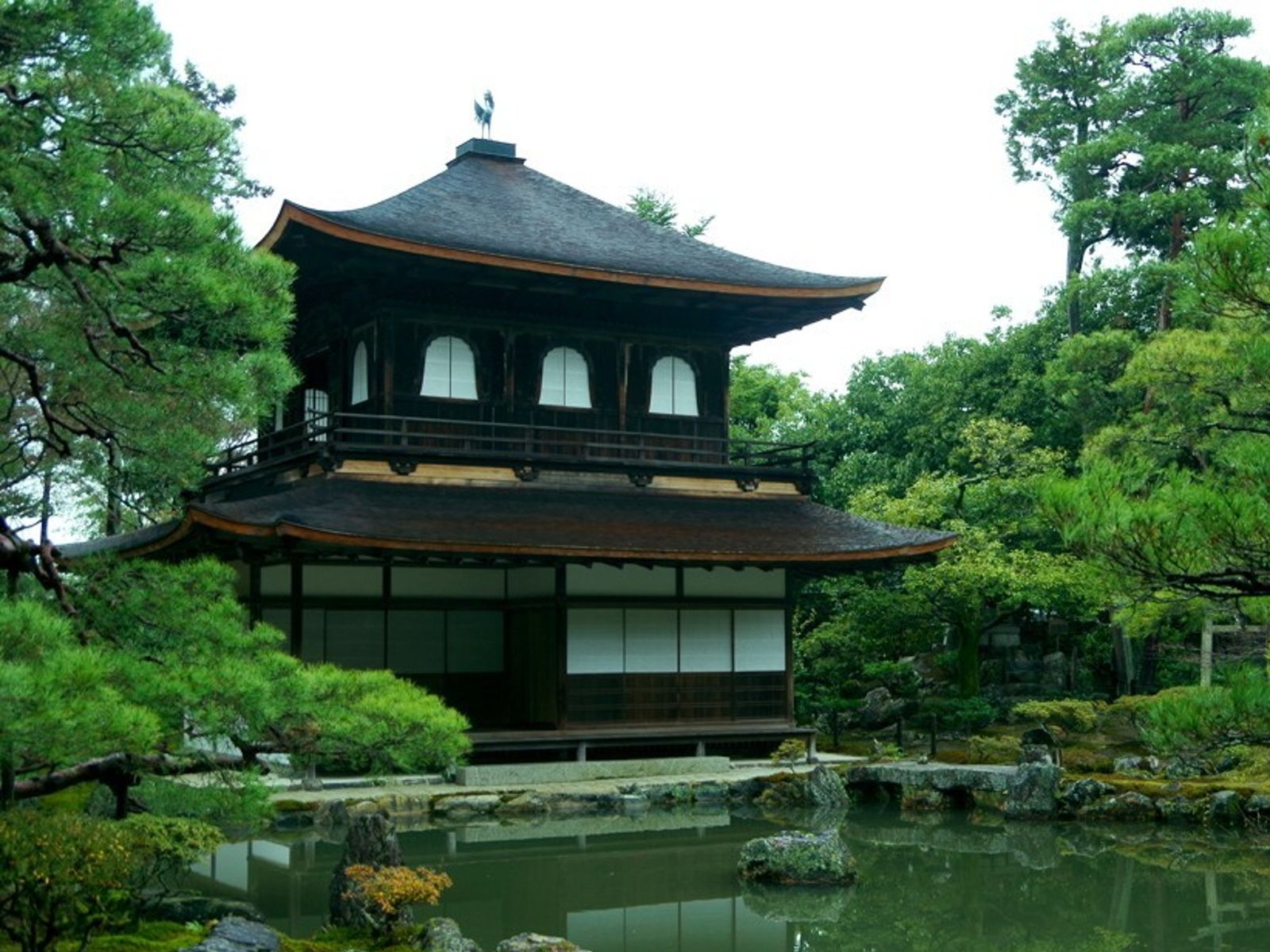 - Гинкаку-дзи – буддийский храм, посвященный богине Каннон, который называют также «Серебряным павильоном». В отличие от «Золотого павильона», который на самом деле покрыт этим драгоценным металлом, «Серебряный» построен исключительно из дерева. Отдельное внимание уделим саду из мхов, окружающему павильон;