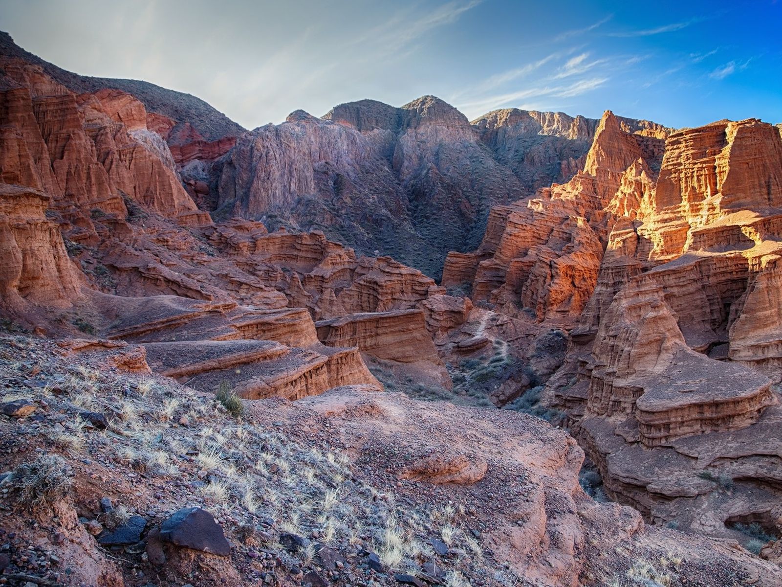 Далее нас ждёт путь через живописное Боомское ущелье к каньонам Кок-Мойнок. Лёгкий поход по лабиринтам красных скал подарит ощущение прогулки по Марсу и впечатляющие фотографии.