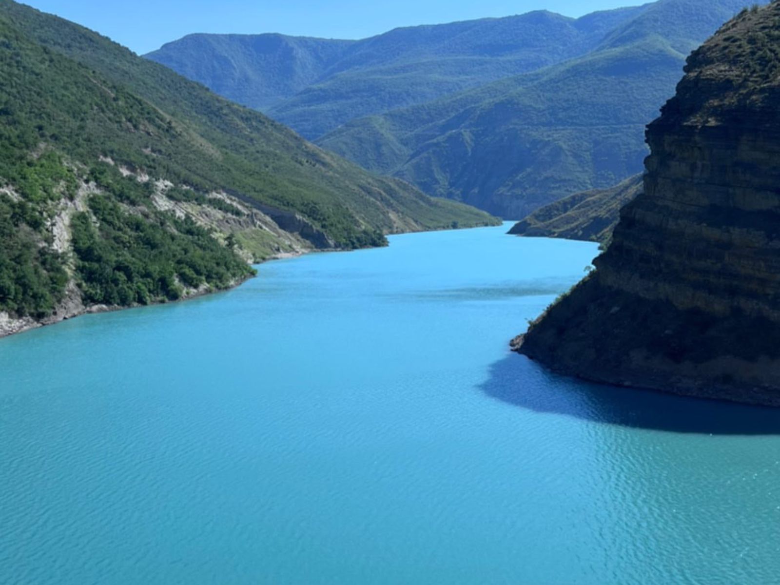 Следующая точка — Чиркейское водохранилище, одно из крупнейших инженерных чудес Северного Кавказа.