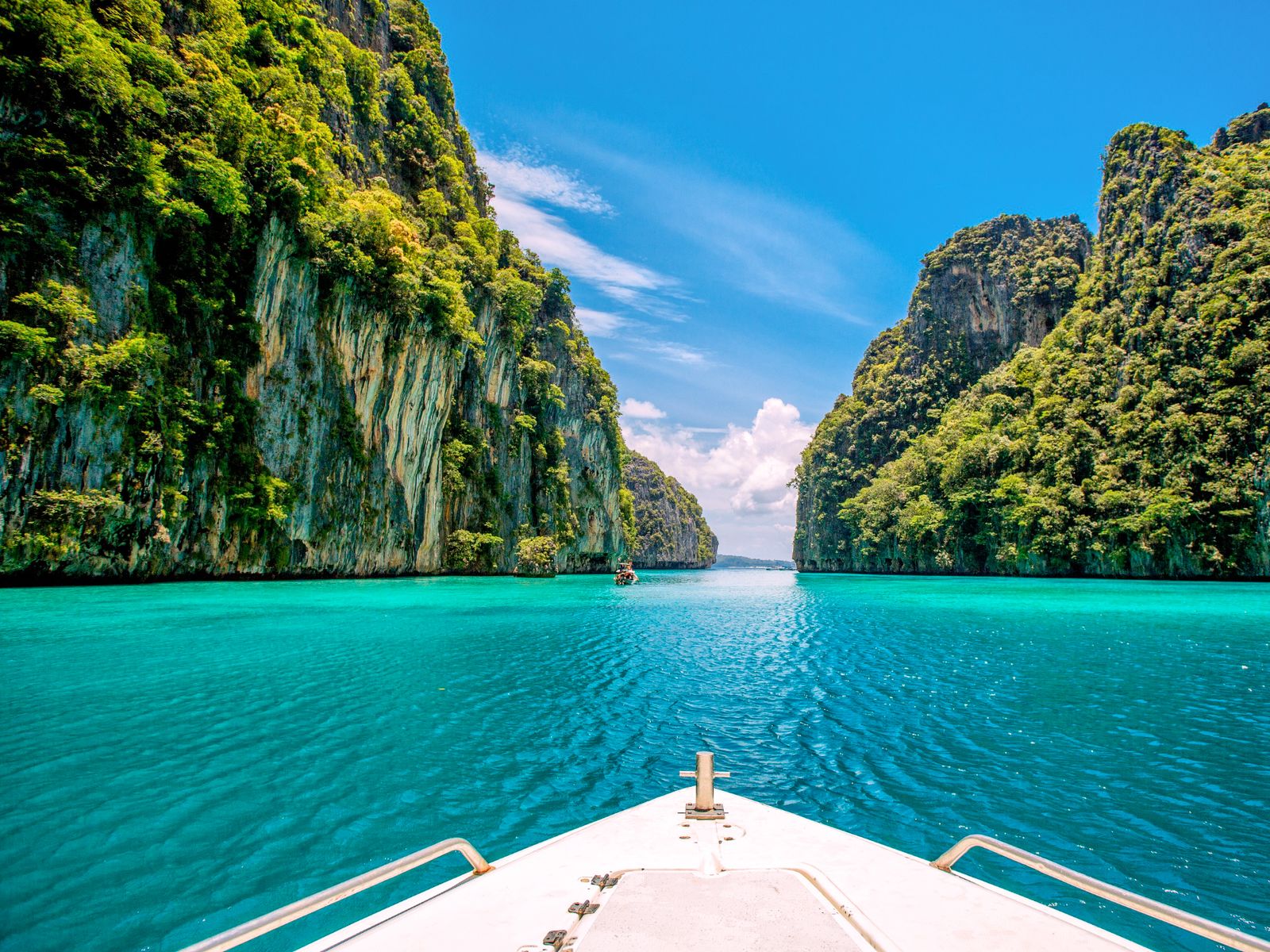 И, наконец, всемирно известный пляж Майя Бэй — место съёмок фильма «Пляж», где белый песок и бирюзовая вода выглядят как декорация к блокбастеру.