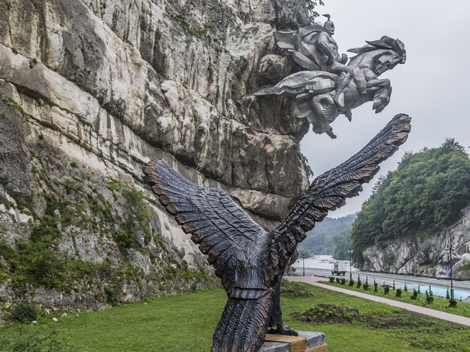 Огромная прикрепленная к скале скульптура весом около 28 тонн изображает героя Уастырджи — небожителя, защитника воинов, путников и мужчин. Этот потрясающий памятник считается одним из крупнейших в мире конных монументов. Тут же вас ждут древние наскальные надписи и святилище.