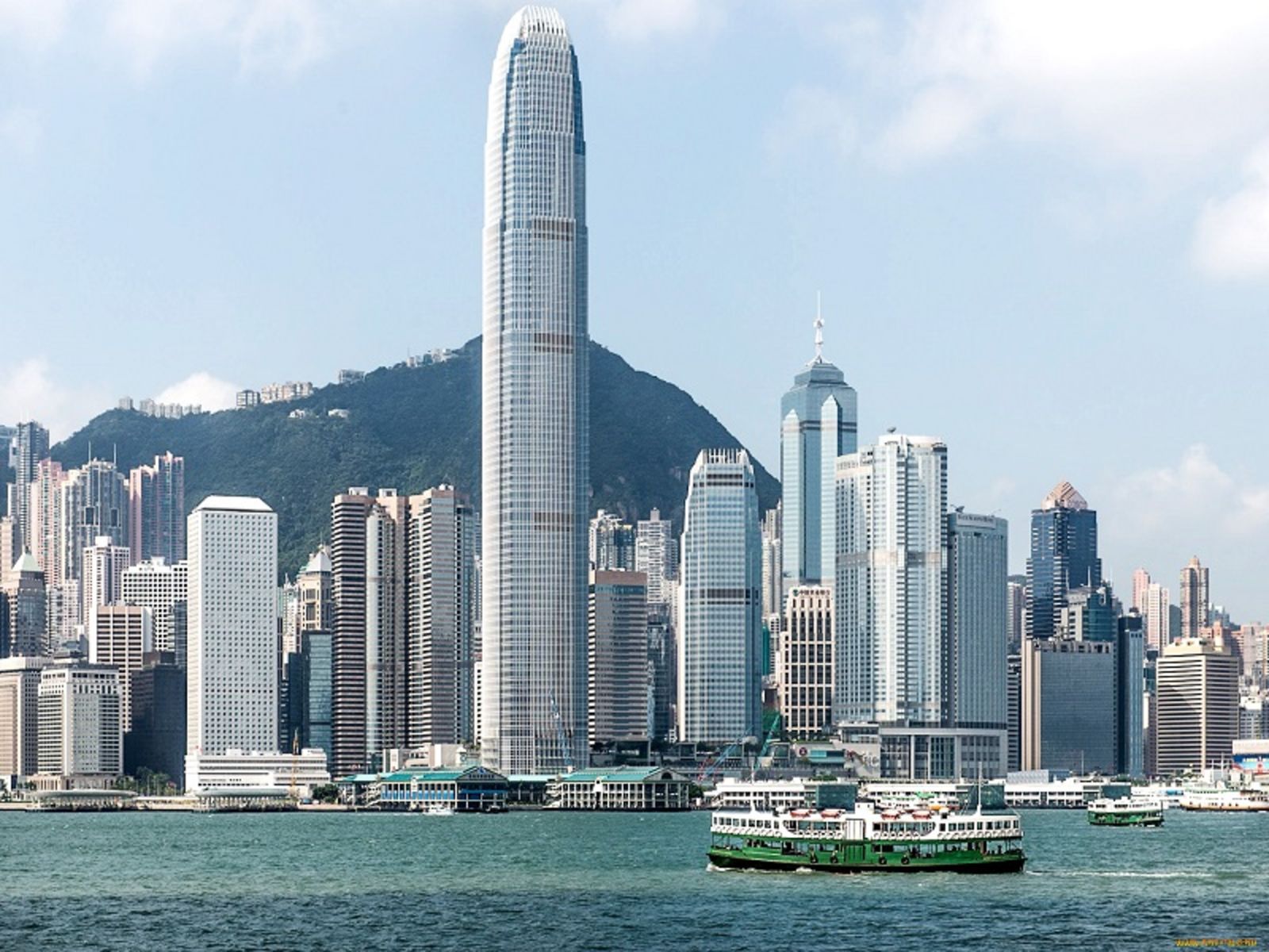 Переправа на старинном пароме Star Ferry через гавань Виктория. Величественный вид на город с воды.