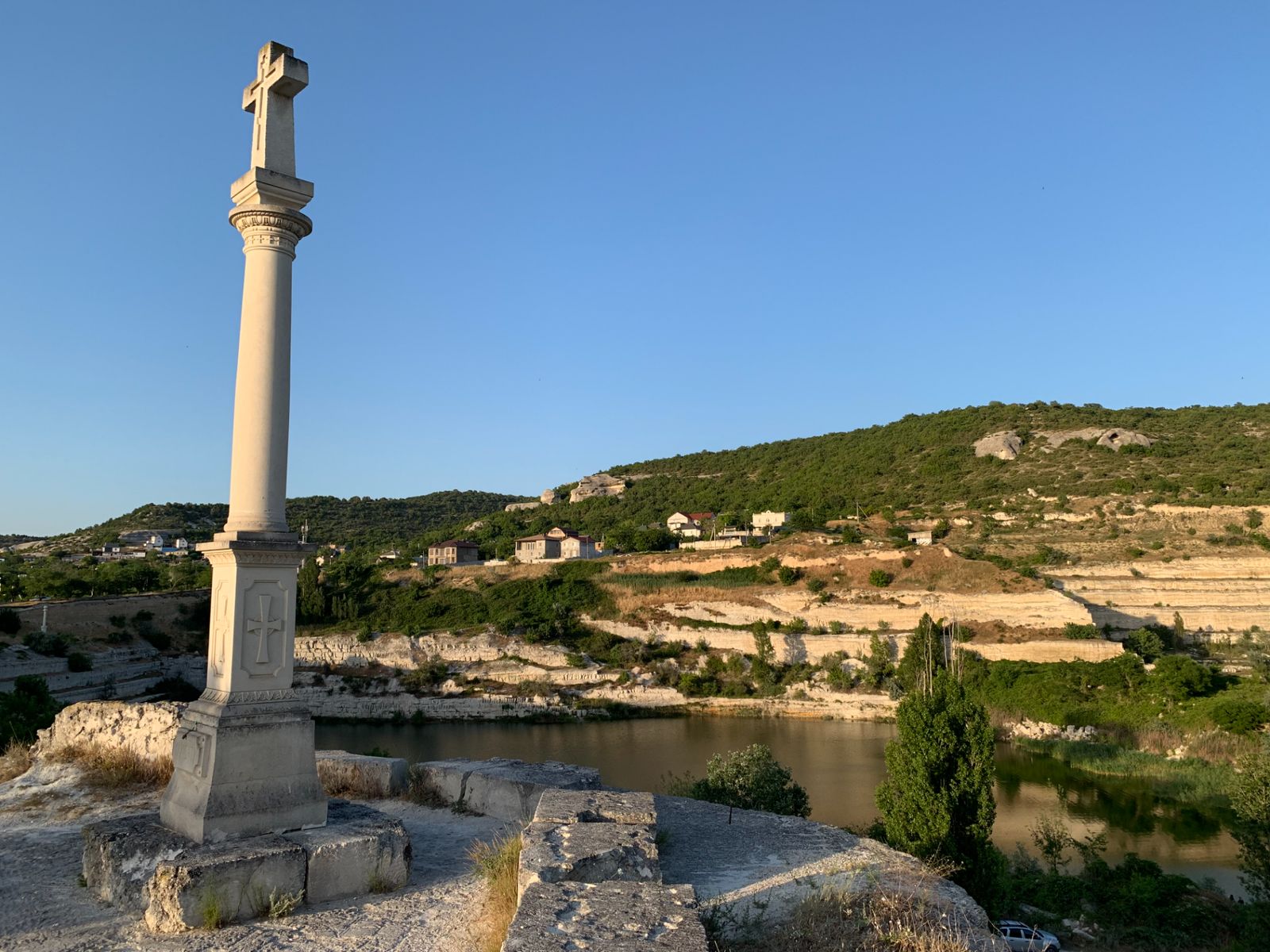 Тут же, на плато монастырской скалы, возвышаются развалины византийской крепости Каламита — памятника фортификации Средневековья.