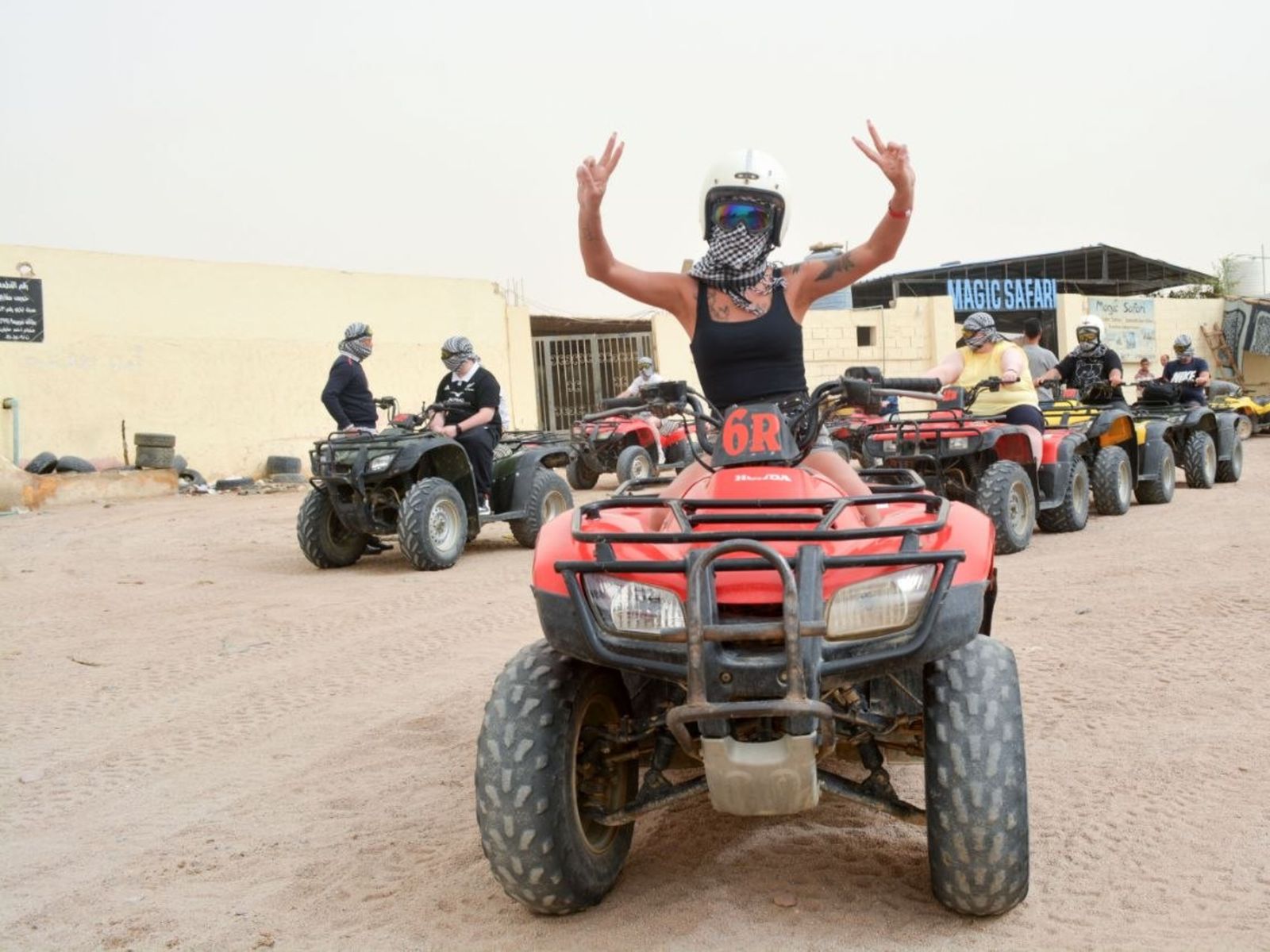 - Включены в стоимость: трансфер из отеля и обратно, квадроциклы (около 3 часов), инструктор и инструктаж, бедуинский чай, катание на верблюде.